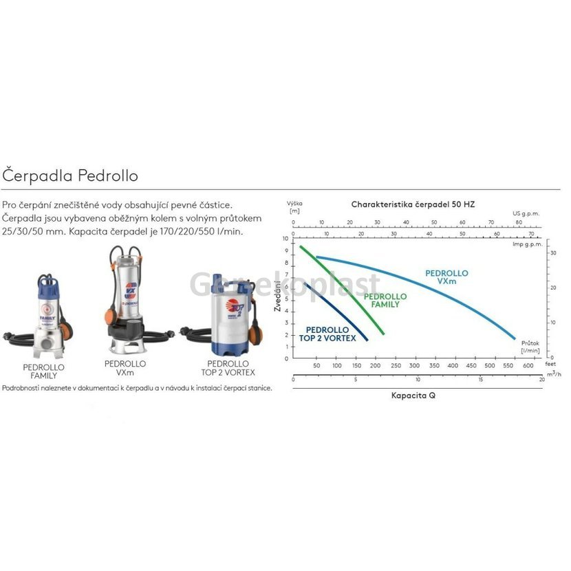 - PSD s čerpadlem Pedrollo Family (vhodné pro splaškovou vodu) - 27 500 Kč.
